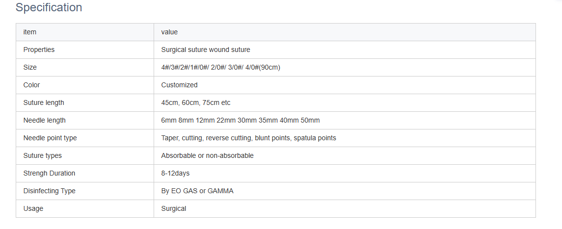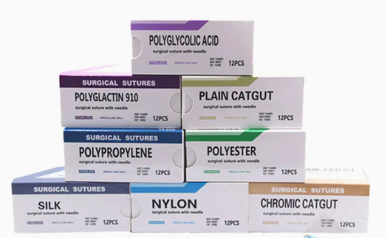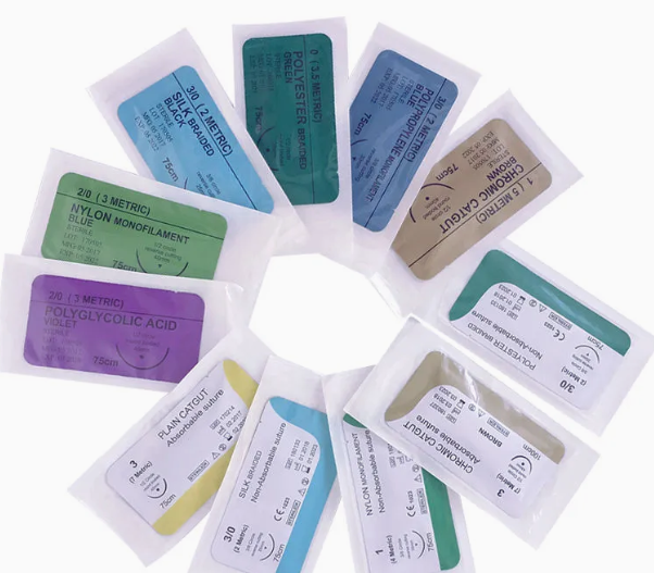 5. Méideanna agus ábhair-ar fáil i roghanna ionsúite (m.sh., vicryl, monocryl) agus roghanna neamh-inláimhsithe (m.sh., níolón, síoda).